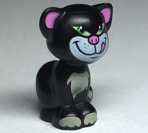 Kat, vrienden/elfen, zittend met donkerroze oren, neus en tong, wit gezicht, groene ogen en fel lichtgele vlekkenpatroon (Lucifer)