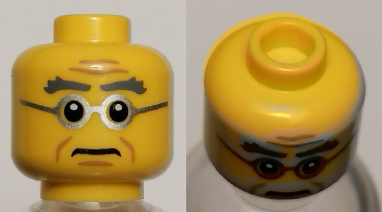 Minifiguur, Hoofd Man Borstelige Grijze Wenkbrauwen, Rimpels, Zilver Frame Bril Patroon - Holle Stud