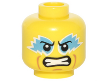 Minifiguur, hoofd Medium azuurblauwe oog verf, patroon met gebalde tanden - Holle noppen