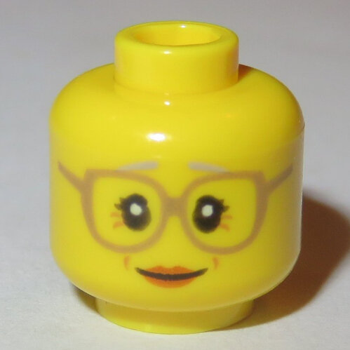 Hoofd vrouwelijk met donker beige bril, grijze wenkbrauwen en kraaienpootjes