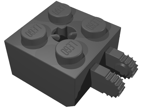 Steen 2 x 2 x 1 met scharnierende vingers, en asgat aan bovenzijde