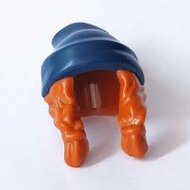 Minifiguur, haarcombo, haar met hoed, 2 vlechten over de schouders met gevormd donkerblauw mutspatroon