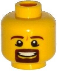 Minifiguur, hoofd mannelijke bruine baard en wenkbrauwen, sik, pupillen, tandenpatroon - holle knop